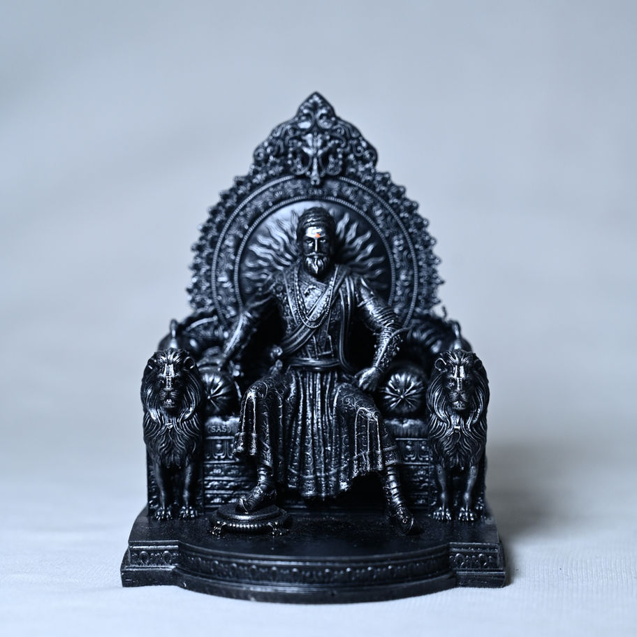 Experience the majestic presence of Chhatrapati Shivaji Maharaj in his royal seated posture. This 4-inch handcrafted murti, made from premium chemical fiber, showcases intricate detailing and a regal aura. Waterproof and durable, it's a perfect addition to your collection.